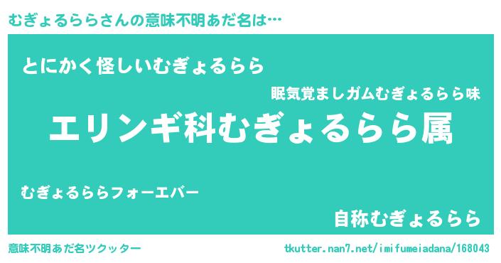 | 料理風あだ名 | 『むぎょるららごはん』 |