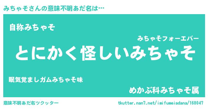 | 胡散臭い通販商品みたいなあだ名 | 『信頼と実績のサプリメント…その名も「みちゃそ」』 |