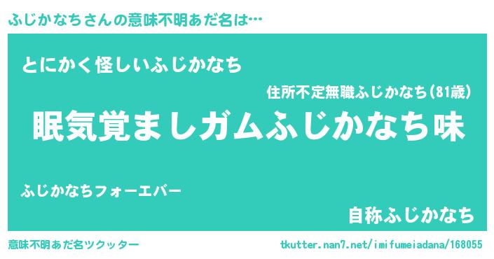 | 男性向けラノベタイトル風あだ名 | 『おまえをオタクにしてやるから、俺をふじかなちにしてくれ! 』 |