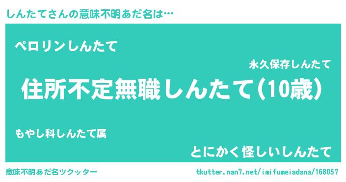 | 男性向けラノベタイトル風あだ名 | 『魔弾の王としんたて』 |