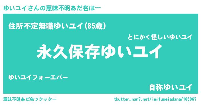 | 男性向けラノベタイトル風あだ名 | 『ゆいユイという概念が存在しない退屈な世界 』 |