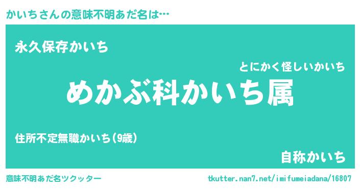 | 胡散臭い通販商品みたいなあだ名 | 『絶対に幸福をもたらす健康食品…その名も「かいち」』 |