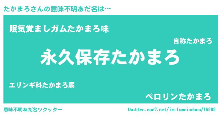 | 男性向けラノベタイトル風あだ名 | 『たかまろという概念が存在しない退屈な世界 』 |