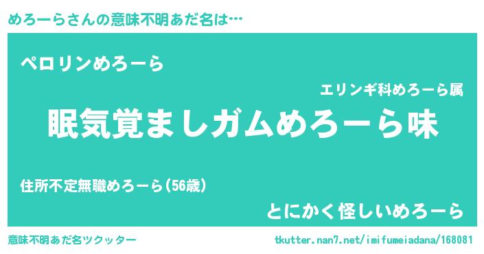| ヘコむあだ名 | 『めろにー』『めろっぺ』『つくし』 |