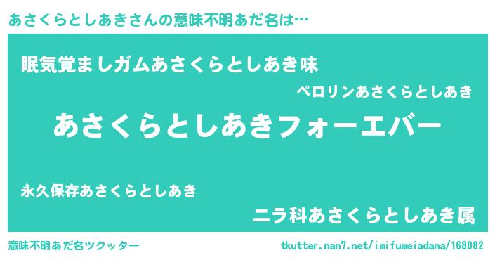 | 欧米人風あだ名 | 『あさくらとしあきクリステル』 |