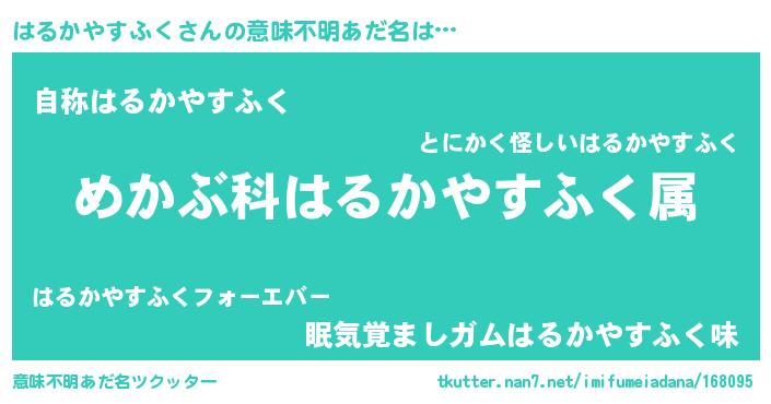 | ヒーロー風カッコイイあだ名 | 『ウルトラ戦士ハルカヤスフク』 |