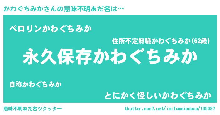 | ヘコむあだ名 | 『かわぐちみか(震え声)』『かわにゅー』 |