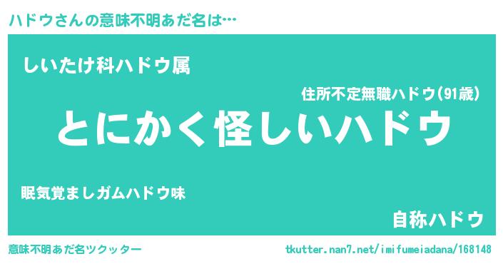 | ヒーロー風カッコイイあだ名 | 『炎刃騎士ハド』『超時空戦士ハドウ』 |