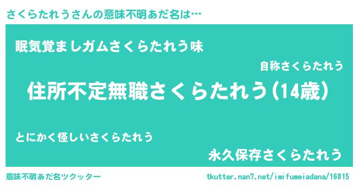 | ヒーロー風カッコイイあだ名 | 『仮面サクダー』『ネオサクラタレウ』 |