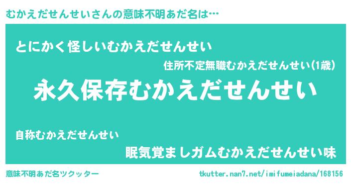 | 胡散臭い通販商品みたいなあだ名 | 『絶対に幸福をもたらす健康食品…その名も「むかえだせんせい」』 |