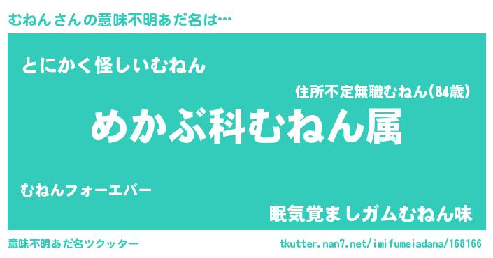 | ヒーロー風カッコイイあだ名 | 『暗黒騎士ムネ』『正義の使者むねん』 |