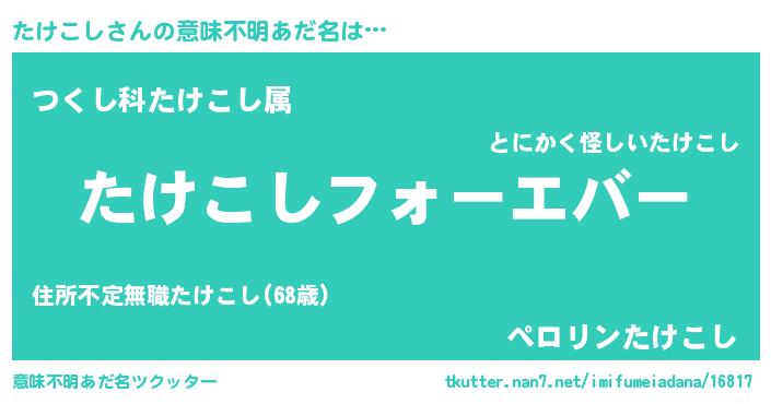 | ファンタジー風あだ名 | 『エターナルタケコシー』『タケフェル』 |