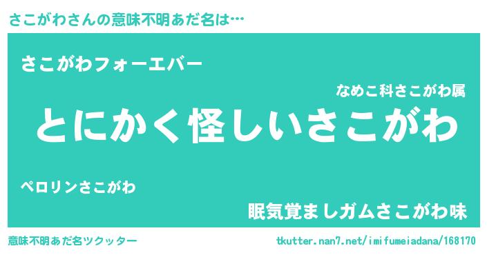 | 男性向けラノベタイトル風あだ名 | 『さこがわに滅ぼされるだけの簡単なお仕事です』 |