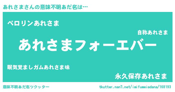 | 恥ずかしいあだ名 | 『あれっちょ』『プリティーあれさま』 |