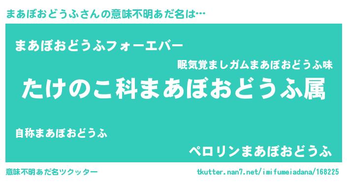 | 料理風あだ名 | 『まあぼおどうふごはん』 |