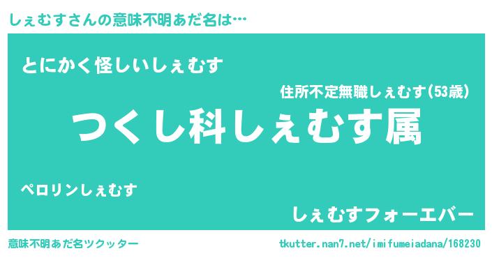 | 肩書あだ名 | 『しぇむす大佐』『しぇむす塾長』 |