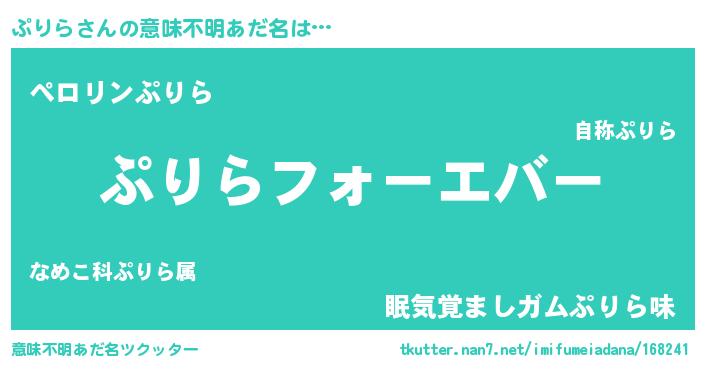 | ヒーロー風カッコイイあだ名 | 『ウルトラぷりらマン』『スーパープリラ』 |