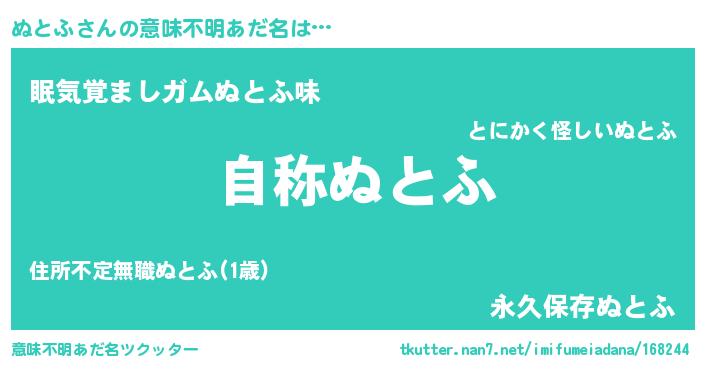| ヘコむあだ名 | 『ぬとふ(笑)』『ぬと太郎』 |