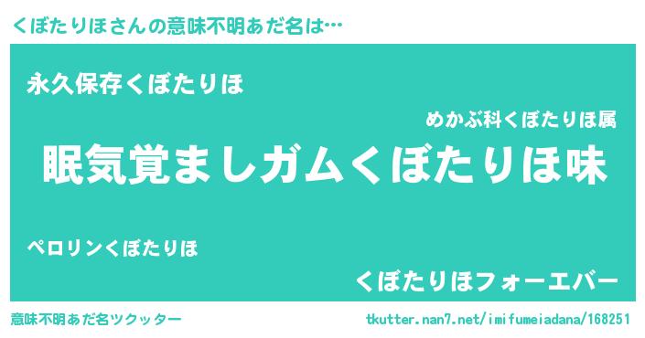 | ヘコむあだ名 | 『くぼたりほ(笑)』『つくし』 |