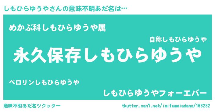 | ヘコむあだ名 | 『しもひらゆうや(笑)』『つくし』 |