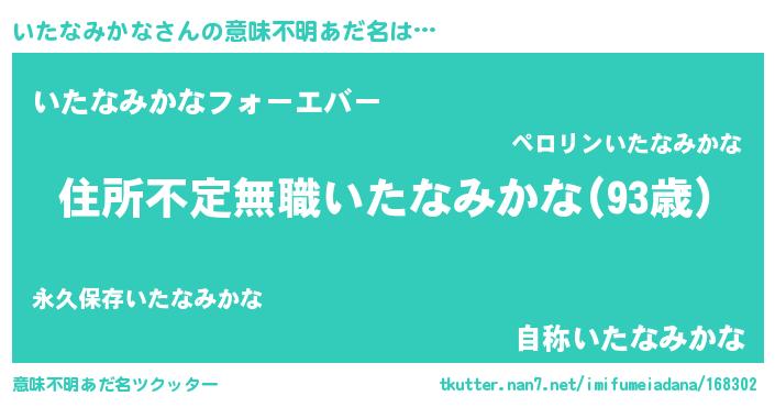 | 肩書あだ名 | 『いたなみかな教官』『いたなみかな閣下』 |