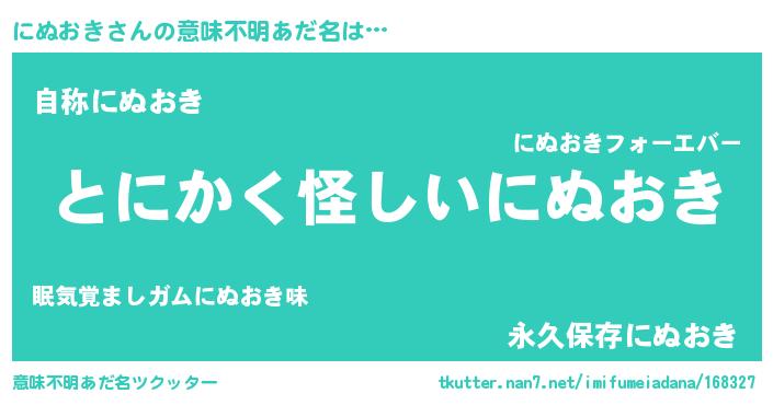 | ヘコむあだ名 | 『にぬっちょ』『にぬおき(小並感)』 |