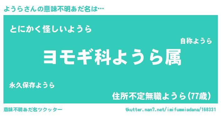 | ヘコむあだ名 | 『ようぷりん』『ようら(遠い目)』 |