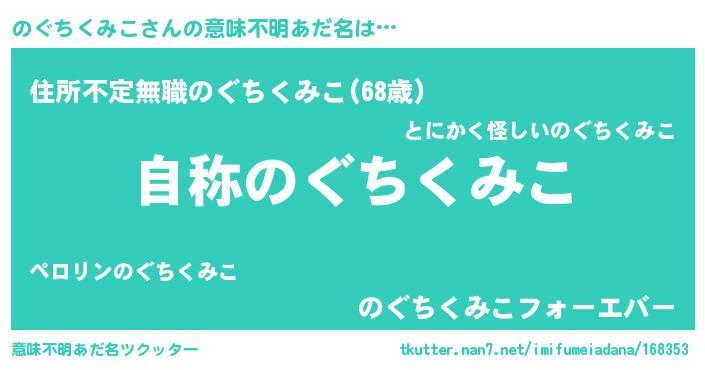 | 男性向けラノベタイトル風あだ名 | 『Re:のぐちくみこから始める異世界生活』 |