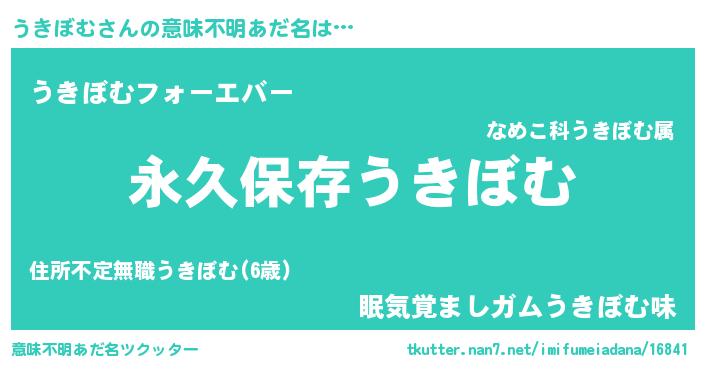 | 男性向けラノベタイトル風あだ名 | 『うきぼむに滅ぼされるだけの簡単なお仕事です』 |
