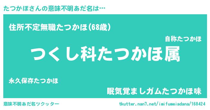 | 男性向けラノベタイトル風あだ名 | 『たつかほ~年齢イコール彼女いない歴の魔法使い~』 |