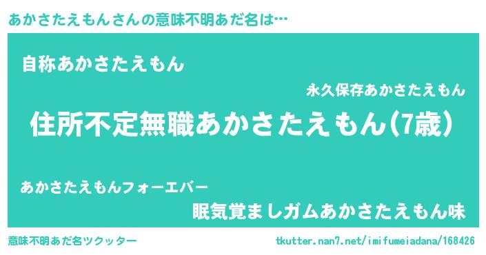 | ヘコむあだ名 | 『あかさたえもん(笑)』『豆乳』 |