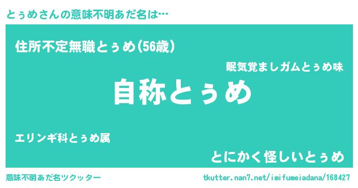 | 肩書あだ名 | 『とぅめ総統』『とぅめ教官』 |
