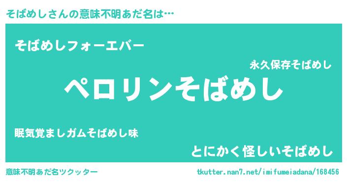 | 男性向けラノベタイトル風あだ名 | 『ソバメシアートオンライン』 |