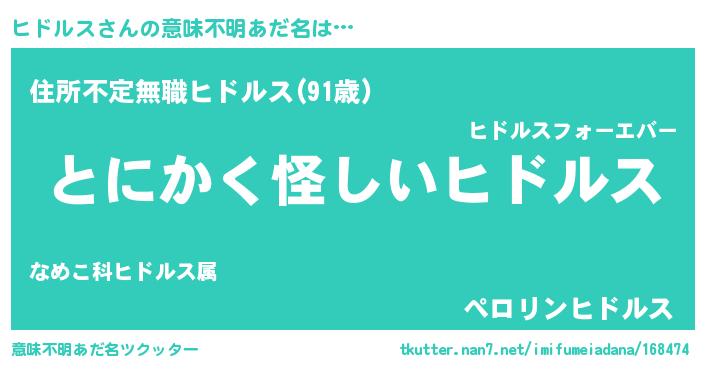 | 男性向けラノベタイトル風あだ名 | 『ダンジョンにヒドルスを求めるのは間違っているだろうか』 |