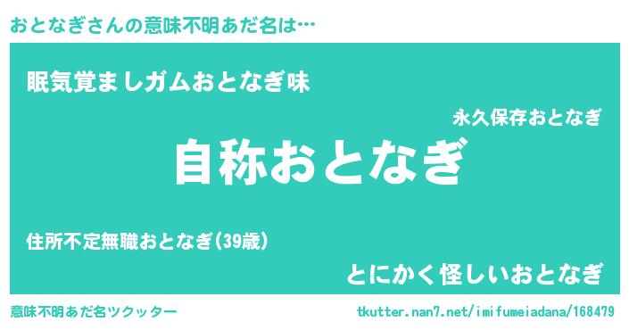| 男性向けラノベタイトル風あだ名 | 『Re:おとなぎから始める異世界生活』 |