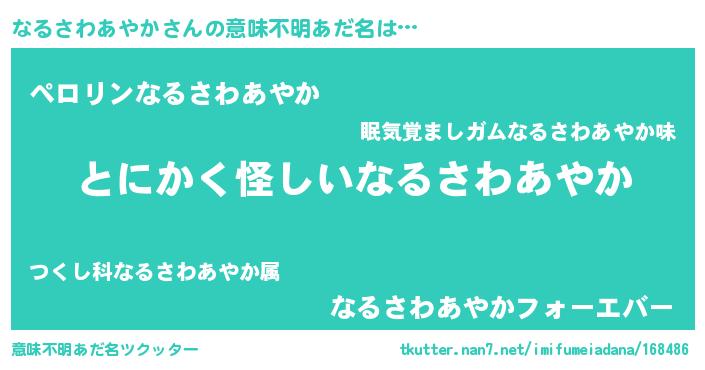 | ポケモン風あだ名 | 『ヒナルサワアヤカ』『ナルゴンZ』 |