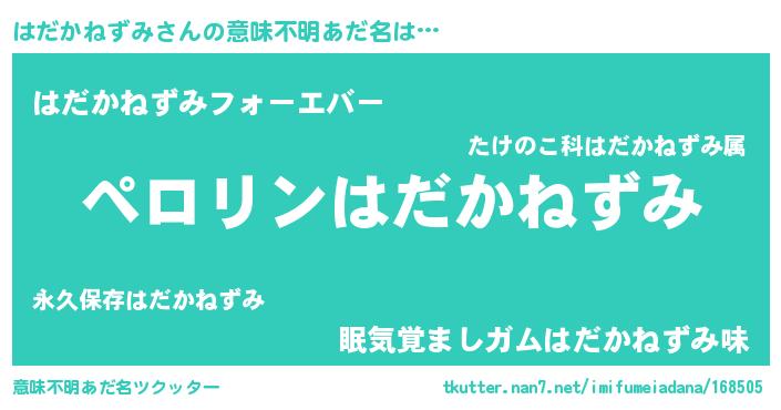 | ヘコむあだ名 | 『はだふぇ~』『なまこ酢』『はだを』 |