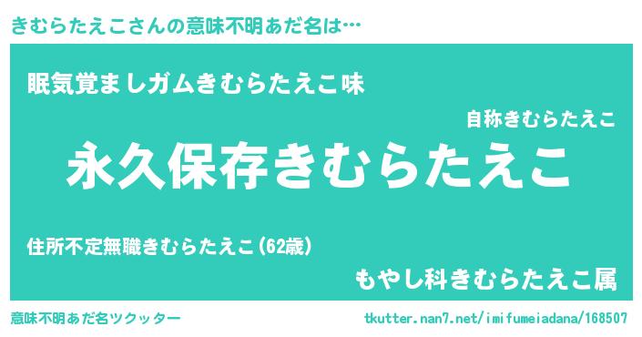 | 男性向けラノベタイトル風あだ名 | 『きむらたえこという概念が存在しない退屈な世界 』 |