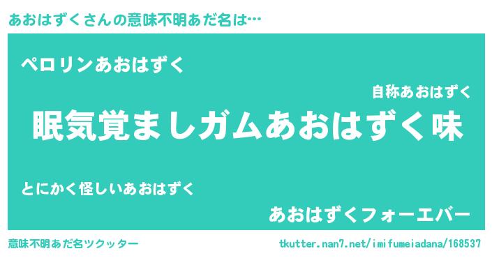 | 欧米人風あだ名 | 『アンジェラ・あおはずく』 |