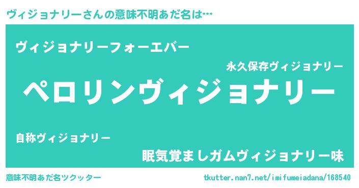 | 男性向けラノベタイトル風あだ名 | 『ヴィジョナリーの憂鬱』 |