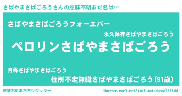 | 胡散臭い通販商品みたいなあだ名 | 『必ず成功する霊験あらたかなお札…その名も「さばやまさばごろう」』 |