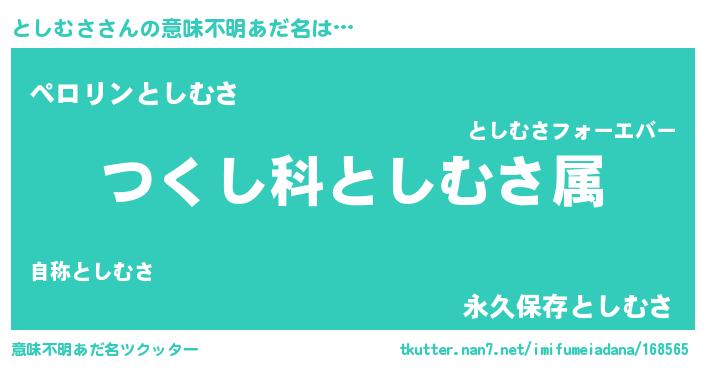 | ヘコむあだ名 | 『としにゅー』『としむさ(笑)』 |