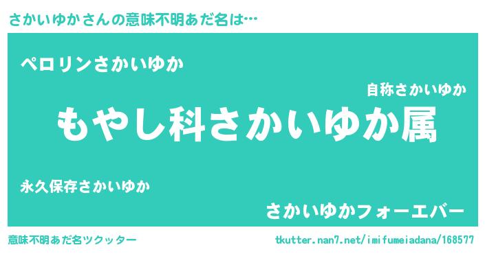| 女子向けラノベタイトル風あだ名 | 『さかいゆかの玉の輿計画!』 |