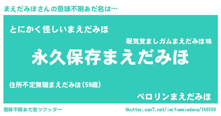 | ヘコむあだ名 | 『まえだみほ(笑)』『まえっ子』 |