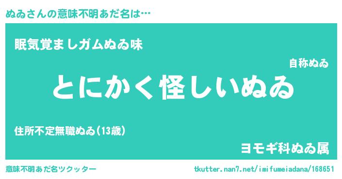 | ヒーロー風カッコイイあだ名 | 『幻影騎士ヌヰ』『天空の使者ぬゐ』 |