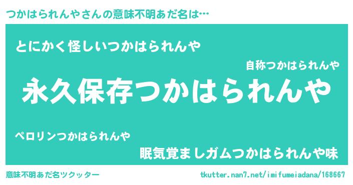 | 欧米人風あだ名 | 『つかはられんや・ステッグマイヤー』 |