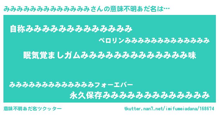 | ヒーロー風カッコイイあだ名 | 『天空の使者みみみみみみみみみみみみみ』 |