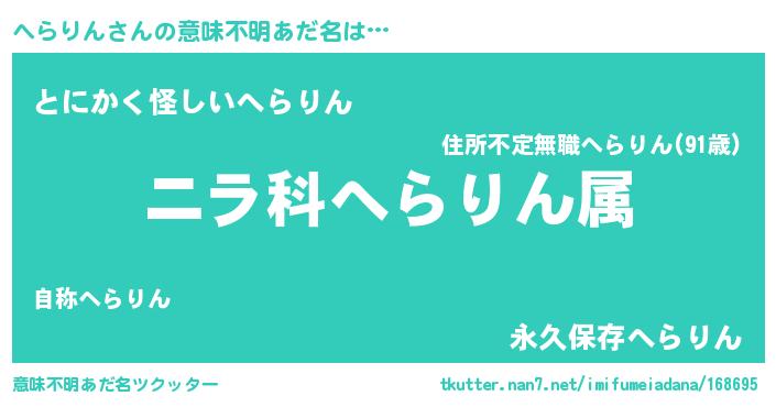 | 欧米人風あだ名 | 『トリンドルへらりん』 |