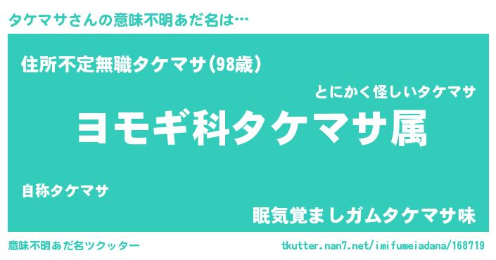 | 欧米人風あだ名 | 『トリンドルタケマサ』 |