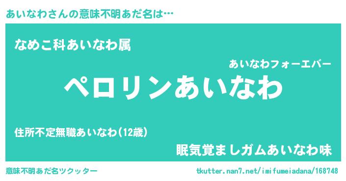 | ヒーロー風カッコイイあだ名 | 『スーパーアイナワ』『愛の使者あいなわ』 |